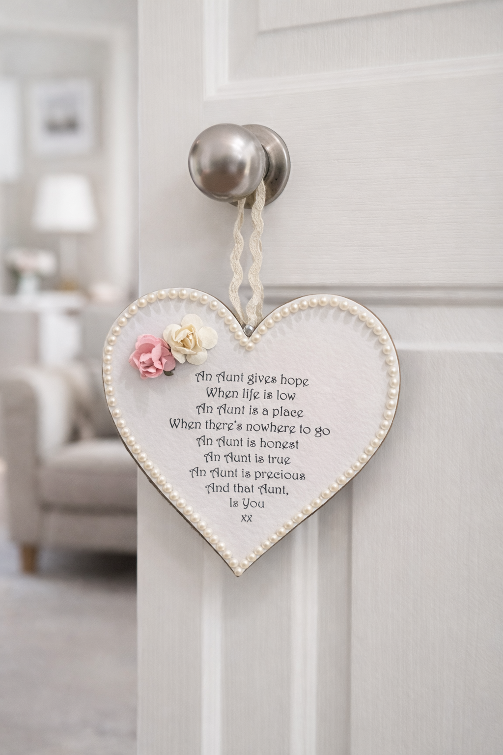 Pretty little hanging heart with a sentimental message for a loved one.